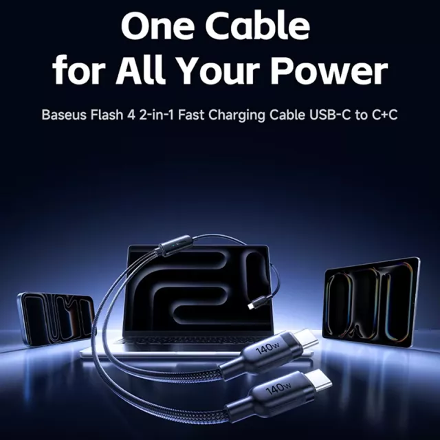 Tired of carrying multiple cables for every device? This 2-in-1 USB-C to dual USB-C fast charging cable keeps your setup clean, simple, and powerful. With up to 140W power delivery, it’s built for modern laptops, tablets, and phones that demand serious speed and reliability. Whether you’re working, traveling, or relaxing at home, this cable makes sure your devices stay charged and ready without the clutter.