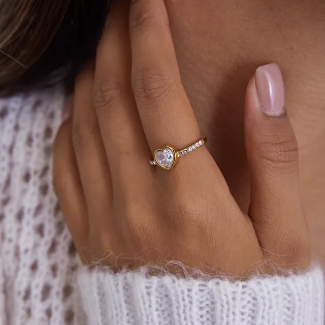 Discover a stunning accessory designed to make every moment shine. This elegant heart-shaped cubic zirconia ring brings together timeless beauty and modern style in a piece that feels luxurious yet effortless to wear. Crafted from durable stainless steel and finished with rich 18K PVD gold plating, it delivers long-lasting brilliance that keeps up with your everyday life. Its hypoallergenic design makes it gentle on sensitive skin, so you can enjoy comfort and confidence all day long.