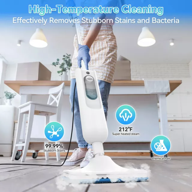 Experience a faster, fresher, and more enjoyable way to clean your home. This 6-in-1 steam mop delivers high-temperature steam above 212°F to melt away tough grease, sticky grime, and stubborn stains without using a drop of chemicals. Its natural steam power eliminates up to 99.99% of viruses and bacteria, making every surface feel truly refreshed. Whether you’re cleaning hard floors, refreshing carpets, scrubbing grout, or tackling kitchen messes, this versatile system is designed to make everyday chores effortless.