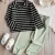 This outfit stands out for its fresh, simple charm. The striped V-neck shirt adds a classic touch, while the textured waffle-check pants give the look a modern twist. Whether worn to school, family outings, playdates, or casual weekends, it offers effortless style without sacrificing comfort. The breathable, flexible material makes it perfect for active kids in the mild temperatures.