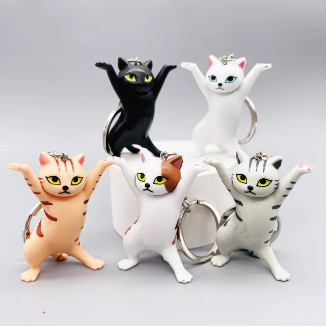 The keychain features a smooth metal finish with a strong alloy ring that holds your keys securely. The resin cat figure is detailed, cute, and eye-catching, making it a great conversation starter.