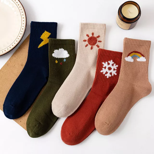 These socks stand out thanks to their unique cartoon weather print that instantly brightens any look. They’re not just stylish—they’re practical too. The comfortable mid-tube length pairs easily with sneakers, boots, or casual shoes, and the fabric blend provides flexibility that moves with you, whether you’re walking across campus or enjoying a cozy evening indoors.
