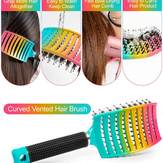 This brush features a unique curved and oversized head, measuring approximately 9.65 x 2.87 inches, allowing it to cover more hair with each pass. The vented design improves airflow, reducing drying time and helping to prevent heat damage when using a blow dryer. The non-slip rubber handle ensures a secure, comfortable grip, making every styling session easier and more enjoyable.