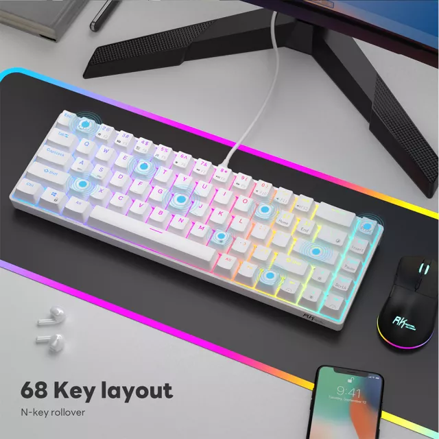 Experience a new level of typing and gaming comfort with this powerful 68-key mechanical keyboard. Designed for those who want top-tier performance without unnecessary bulk, this compact 68% layout fits perfectly on any desk while still giving you access to essential arrow, multimedia, and control keys. Its sleek design and vibrant RGB lighting make it an eye-catching centerpiece whether you’re working during the day or gaming late into the night.