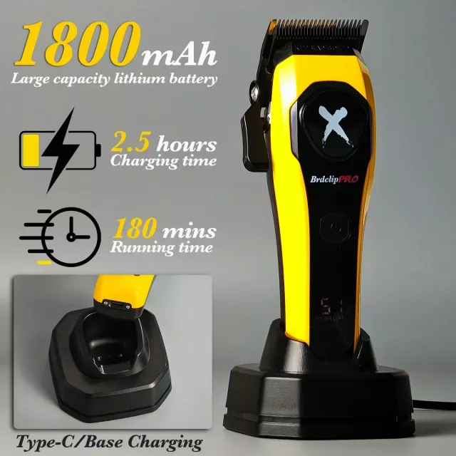 With a lightweight ABS body and ergonomic design, it fits comfortably in your hand, giving you full control and reducing fatigue during extended grooming sessions. The digital LCD display keeps you informed about battery life and settings, so you never run out of power mid-cut. A robust 1800mAh lithium battery provides up to 3 hours of uninterrupted use, making it perfect for both busy salons and at-home styling.