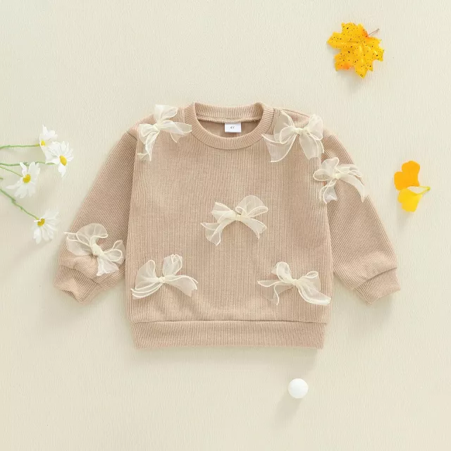 Featuring a 3D tulle bow on the front, this sweatshirt transforms simple days into delightful ones. The round neck and full sleeves ensure warmth and flexibility, while the pullover design makes dressing easy for parents and kids alike. With its clean khaki tone, it pairs effortlessly with skirts, jeans, or leggings for both playtime and outings. Whether it’s a day at the park or a family photo session, this sweatshirt is sure to stand out with its subtle yet stylish design.