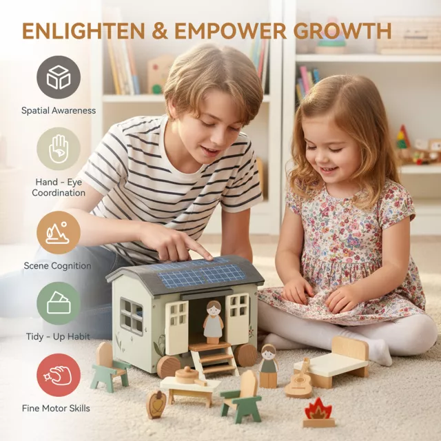 This playset includes a beautifully crafted wooden RV vehicle complete with miniature accessories that mimic real camping gear. The nature-themed design sparks curiosity, while the occupation and sports elements inspire kids to imagine exciting outdoor roles—from explorers and hikers to wildlife spotters. Its compact size makes it easy to carry, measuring conveniently for small hands and portable play.